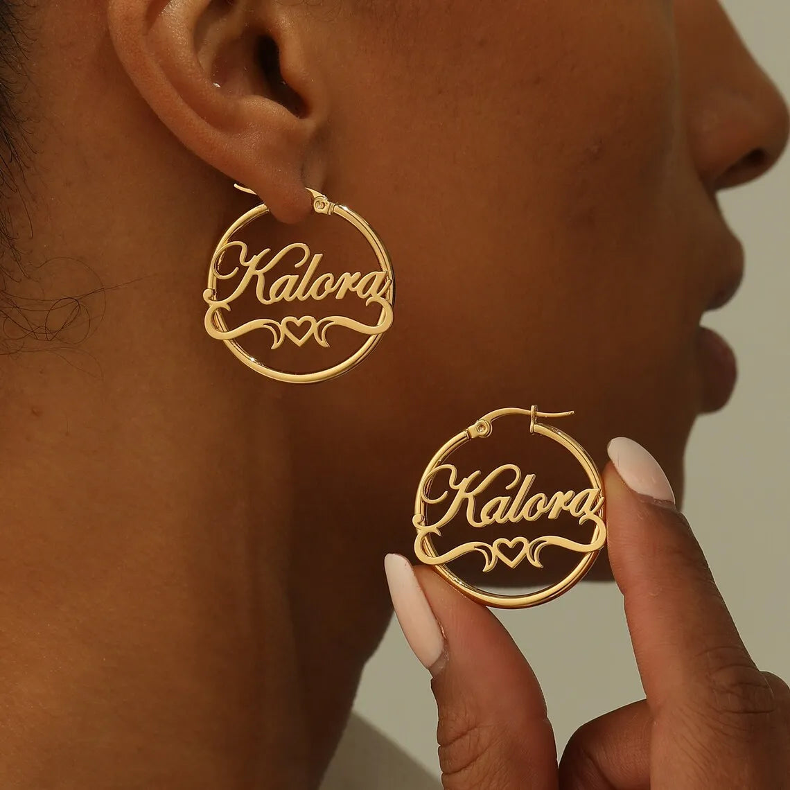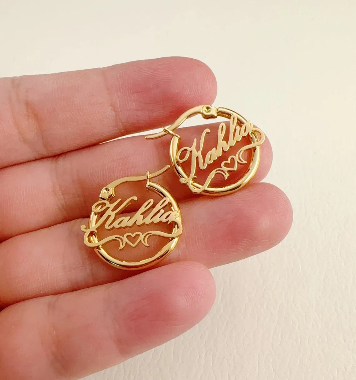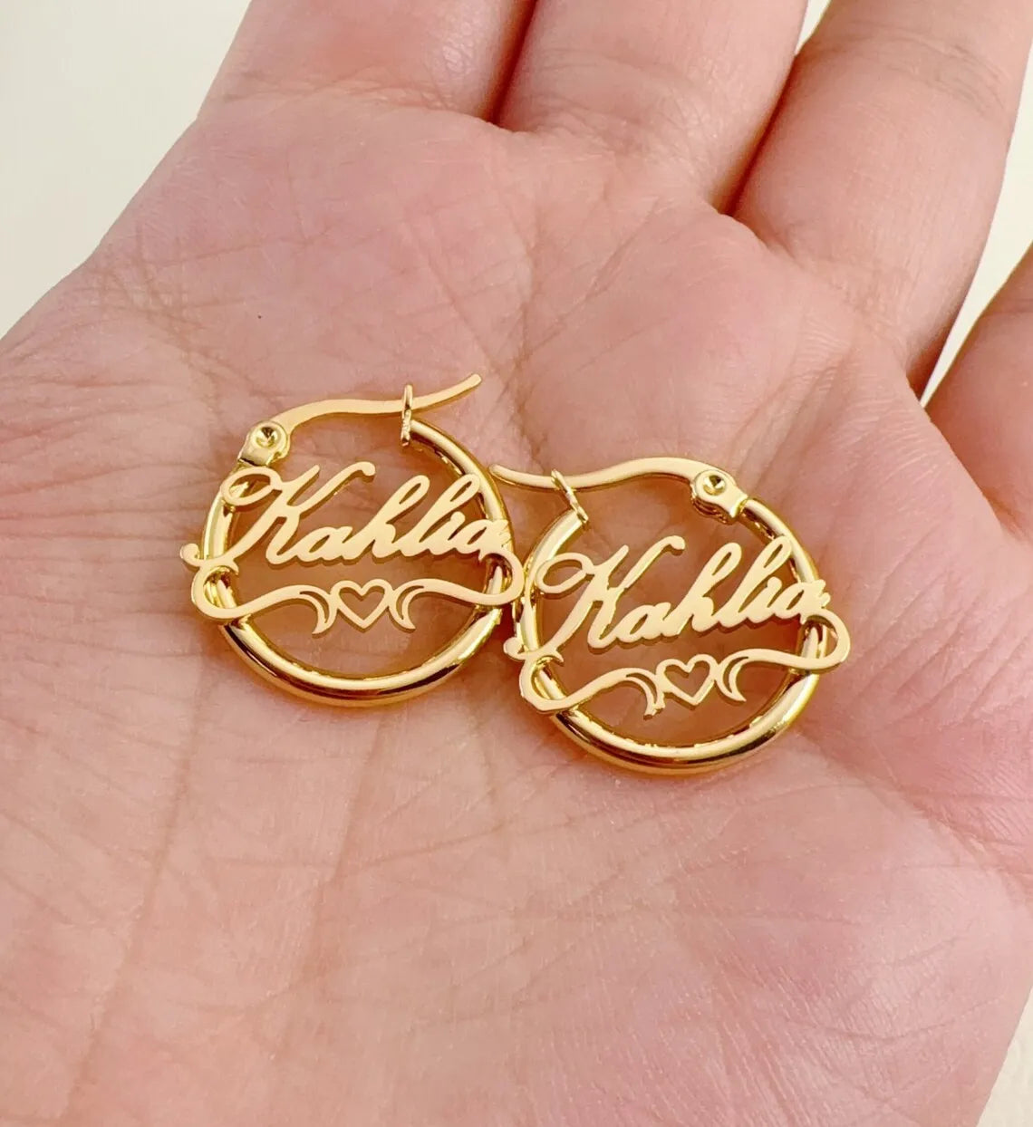 Custom Heart Name Hoop Earrings