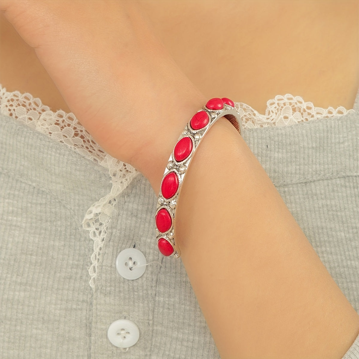 Vintage Turquoise Bangle, Oval Cut