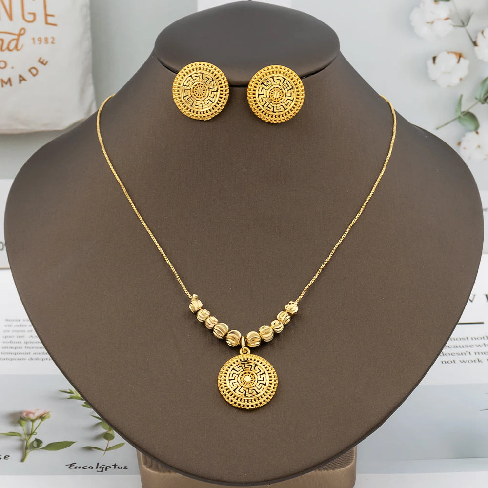 Chram Jewelry: Women Trendy Dubai Geometric Earrings Necklace