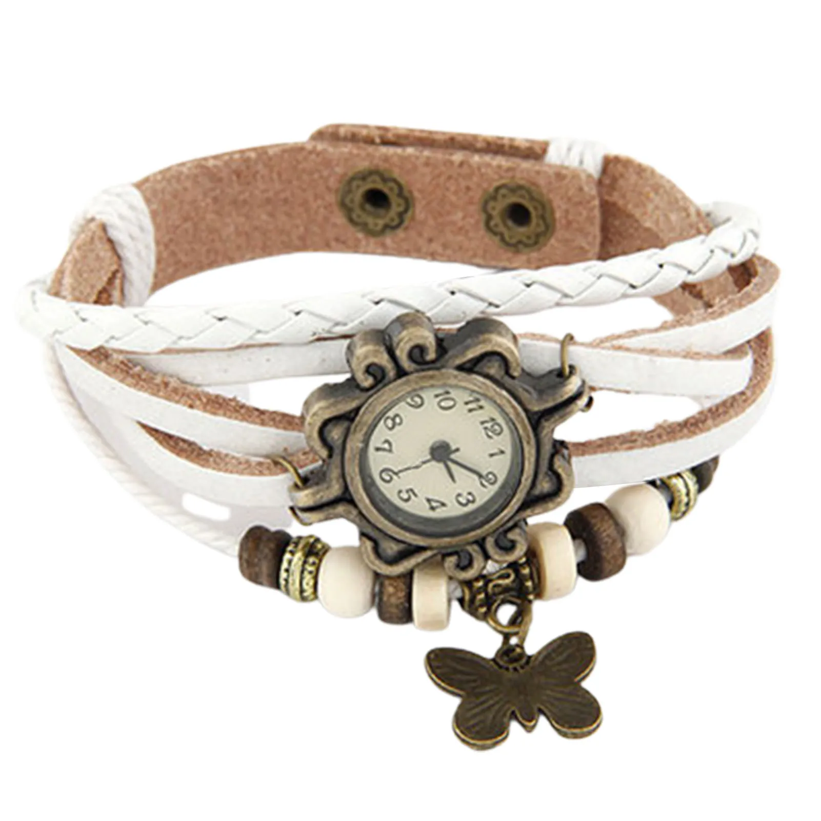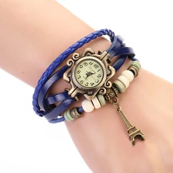 Women Leather Vintage Quartz Watch Multi Layer Handmade Bracelet Wristwatches Adjustable Length Couple Watch Bangle